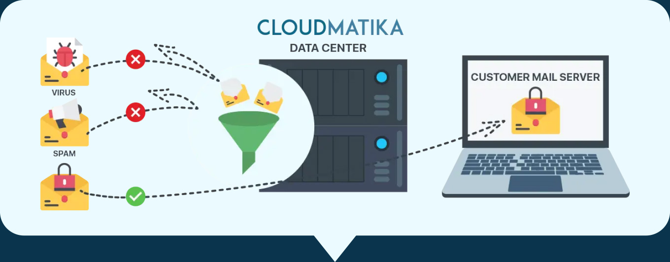 Cloudmatika Mail Buster adalah platform keamanan email berbasis cloud dengan fitur filtering incoming dan outgoing. Solusi ini memblokir spam, virus, ransomware, dan malware sebelum mencapai server atau inbox Anda, menjaga email tetap aman dan meningkatkan produktivitas tim.